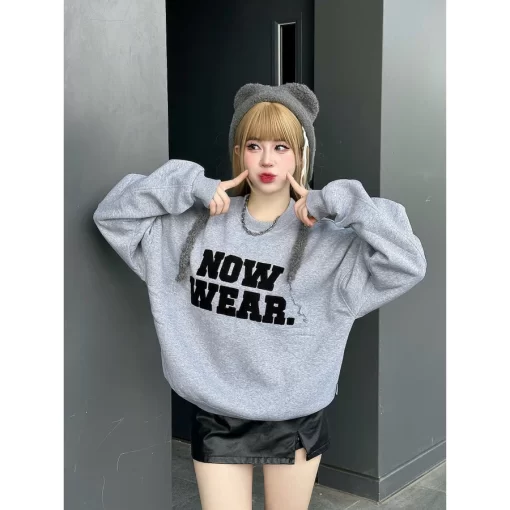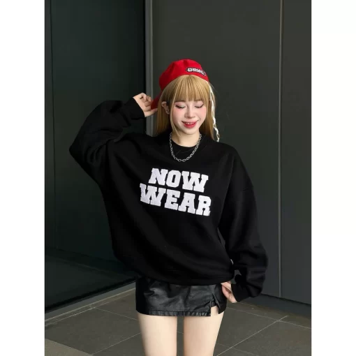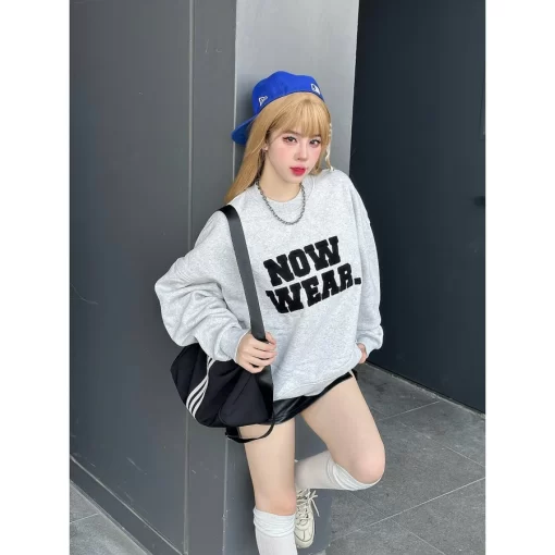 Áo Nỉ Sweater Thêu Xù Nowwear Tay Phồng Form Boxy Chất Nỉ Bông Dày Dặn Nam Nữ Unisex ️