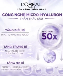 Dưỡng chất L’Oréal Paris Revitalift HA 30ml chứa 2 loại Hyaluronic Acid giúp dưỡng ẩm sâu, mang lại làn da căng mịn, sáng khỏe tức thì.