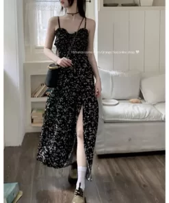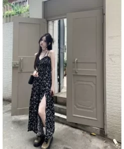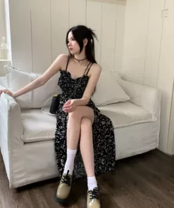Đầm xòe họa tiết hoa phong cách Boho Ditsy cho Nữ,Đầm Hai Dây Hoa Tôn Dáng Đi Biển Form Dài Siêu Nữ Tính