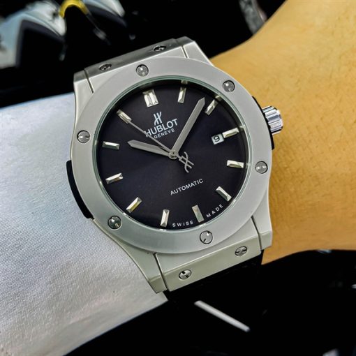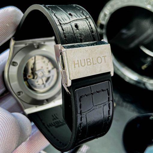 Khẳng định đẳng cấp với mẫu Hublot C152-HBL – thiết kế mạnh mẽ, mặt đen huyền bí, cùng bộ máy cơ automatic mượt mà.