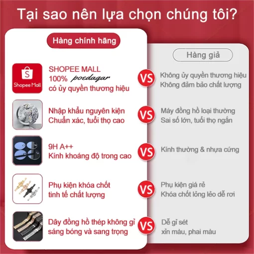 1. Chúng tôi là công ty kinh doanh các thương hiệu đồng hồ chính quy. Nếu có bất kỳ vấn đề gì với sản phẩm bạn nhận được, hãy liên hệ với chúng tôi lập tức. Vui lòng không đánh giá tiêu cực, hãy cho chúng tôi cơ hội để xử lý vấn đề và phục vụ bạn tốt nhất.