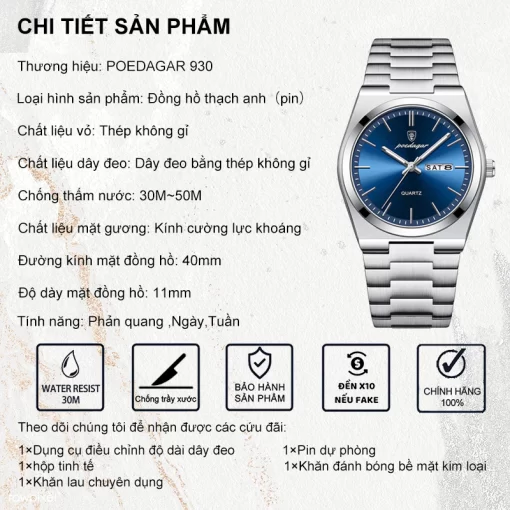 Nếu bạn đang tìm kiếm một chiếc đồng hồ mỏng nhẹ, mượt mà và thực sự mang đậm cảm giác retro những năm 70, thì POEDAGAR 930 là lựa chọn không thể bỏ qua. Với cơ chế chạy bằng pin mang lại độ chính xác cao, sản phẩm này sử dụng công nghệ tiên tiến để xác định lại khái niệm mới về xu hướng đương đại, phù hợp hoàn hảo cả trong thời trang và thương mại