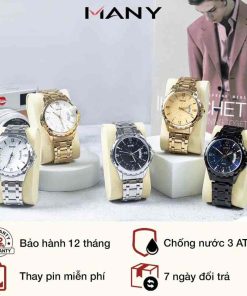 Chức năng: Bộ ba kim (giờ, phút, giây), hiển thị lịch ngày, cọc số La Mã cổ điển