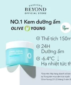 Kem dưỡng ẩm Tinh Linh Nước làm dịu Beyond Angel Aqua Moisture Cream với công thức thuần chay được chứng nhận bởi Viện thuần chay Hàn Quốc đem lại hiệu quả dưỡng ẩm kép trên da: