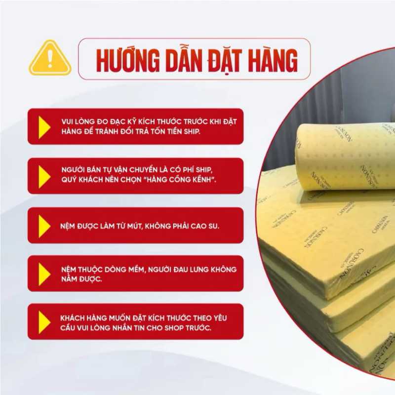 Nệm sẽ có sai số kích thước 1–2,5cm do cắt thủ công