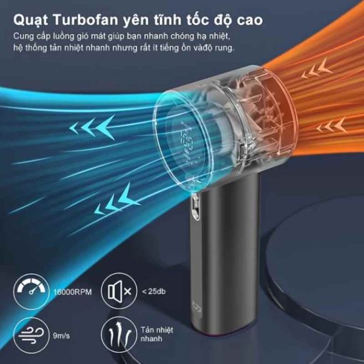 1. Luồng khí mạnh mẽ của động cơ Turbo: Được sử dụng với động cơ không chổi than turbo hiệu quả với tốc độ quay 16000 vòng/phút, quạt cầm tay yên tĩnh cao cấp của chúng tôi tạo ra ít tiếng ồn hơn dưới 25db nhưng tạo ra không khí bão mạnh với tốc độ nhanh tối đa 9m/s và khoảng cách làm mát dài hơn Tối đa 5 mét đến 3 lần giúp bạn hạ nhiệt nhanh hơn trong mùa hè nóng bức. Quạt phản lực giải phóng luồng không khí nén và tập trung đã được lọc và mát như không khí từ không khí điều hòa.