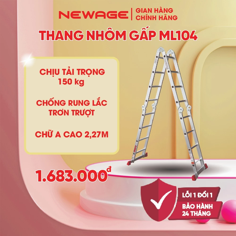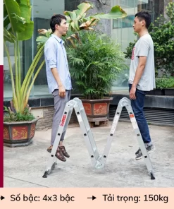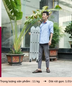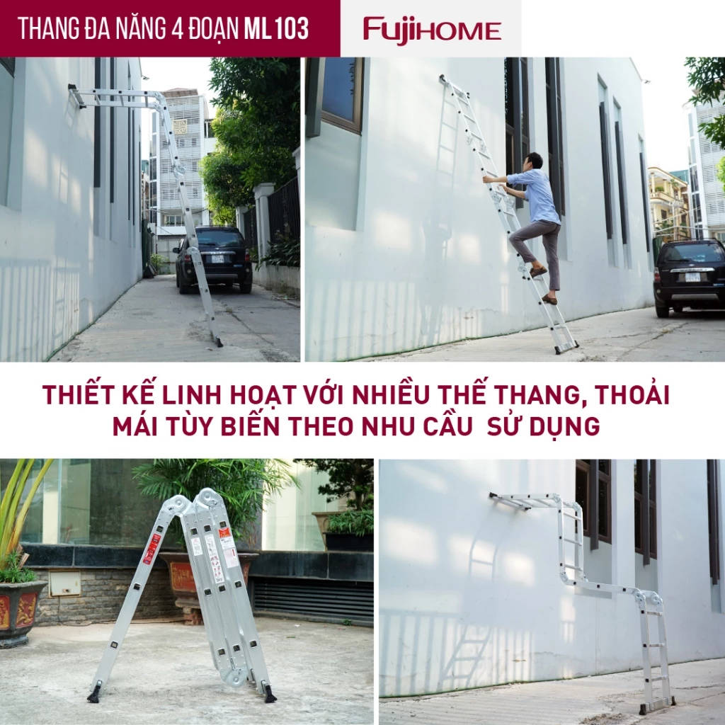 Thiết kế gấp 4 đoạn linh hoạt, sử dụng được tới 12 tư thế khác nhau như A, L, U, M, I… phù hợp với mọi công việc trong nhà hay ngoài trời.