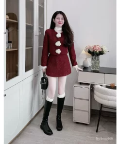 Set Đồ Nữ Mùa Đông Áo Khoác Phối Chân Váy Ngắn Chất Dạ Màu Đỏ Kèm Hoa Ngực Phong Cách Sang Chảnh là lựa chọn lý tưởng cho những cô nàng yêu thích vẻ đẹp thanh lịch, nổi bật và cuốn hút trong những ngày se lạnh. Thiết kế tinh tế, gam màu đỏ thời thượng giúp tôn da và tạo điểm nhấn sang trọng khi mặc đi chơi, dạo phố hay dự tiệc nhẹ.